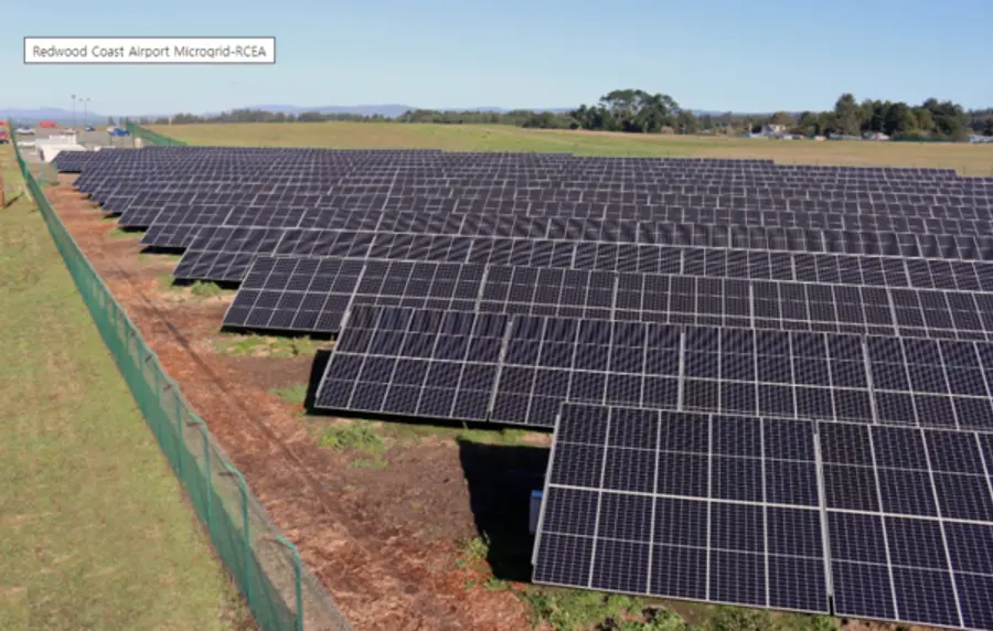 레드우드 코스트 공항 마이크로그리드(RCAM: Reduce Coast Airport Microgrid)는 2.2메가와트(MW)의 태양광 발전 어레이를 특징으로 하는데, 이는 2MW(9메가와트시) 배터리 에너지 저장 시스템에 DC 커플링된 3개의 테슬라 메가팩으로 구성된다. 또한 PG&E의 배전 제어 센터와 직접 연결되는 보호 및 격리 장치를 갖춘 마이크로그리드 제어 시스템도 포함한다.