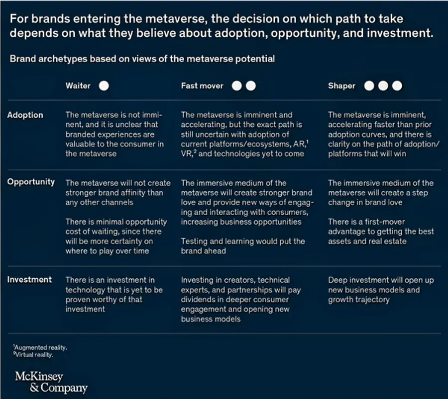 많은 브랜드가 메타버스를 실험했지만 투자 수익에 대한 데이터를 얻는 것이 어려웠다. 일부 회사는 뛰어들고 있고 많은 회사는 여전히 메타버스에 투자하는 것의 이익이 있는지에 대해 고민하고 있는 것으로 조사됐다.