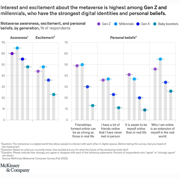 우리가 확인한 것은 Z세대만이 메타버스를 이용하려는 유일한 세대가 아니라는 것이다. 우리의 연구는 광범위한 연령대에 걸쳐 메타버스에 대한 광범위한 인식과 관심을 보여주고 있다.