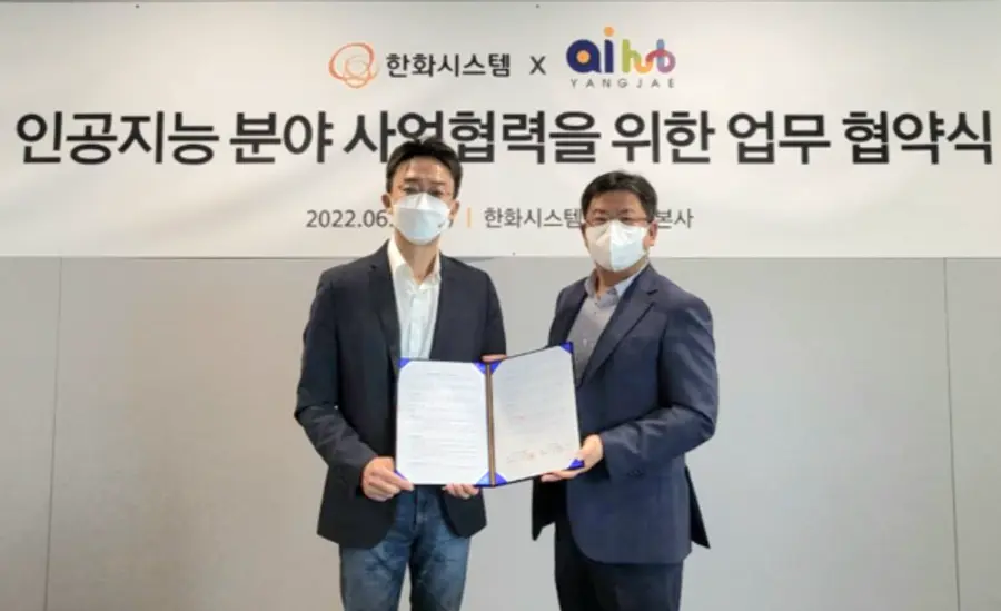 한화시스템(대표이사 어성철)이 인공지능(AI) 유망 스타트업을 발굴·육성하는 AI양재허브와 ‘인공지능 분야 사업 협력을 위한 양해 각서’를 체결했다고 23일 밝혔다.