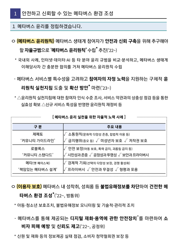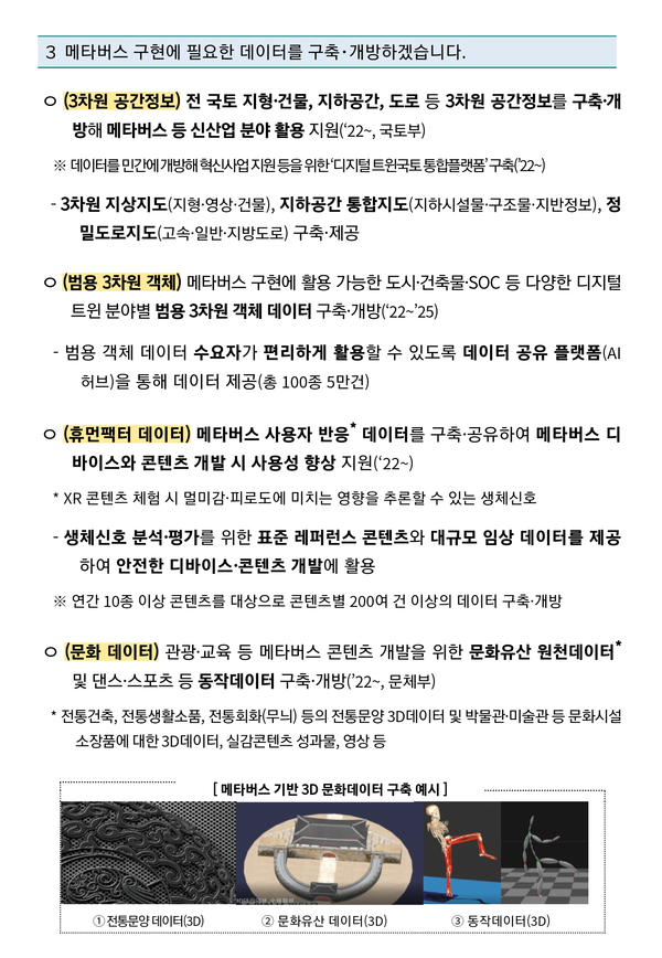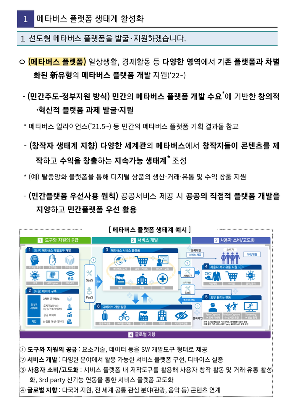 한편 지난 1월 20일 발표된 '메타버스 신산업 선도전략'을 주요 내용을 살펴보면 다음과 같다.