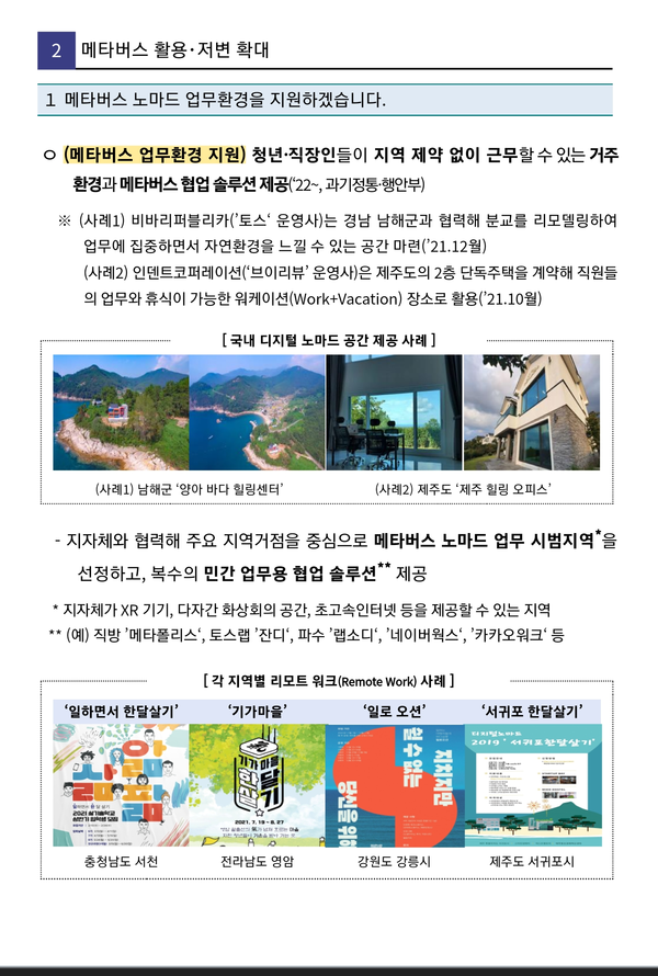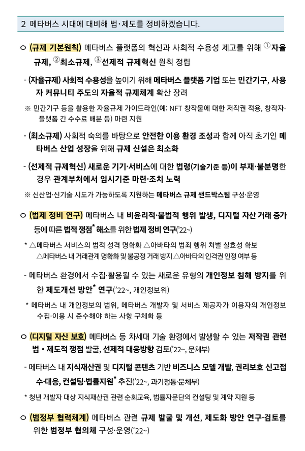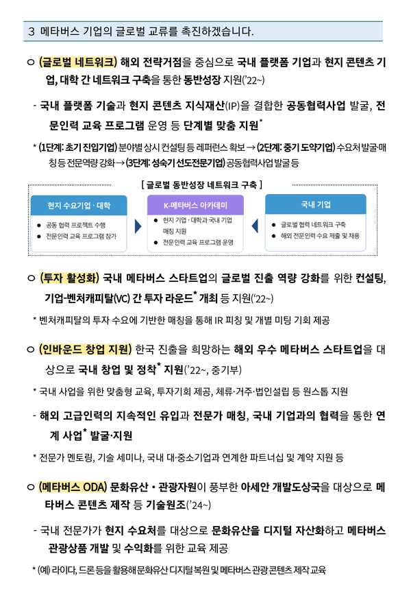 범정부 차원에서 지난 1월 발표·추진되고 있는 '메타버스 신산업 선도전략'은 전국을 5대 권역으로 구분하여 메타버스 허브 밸리를 구축하는 것으로 되어 있다.