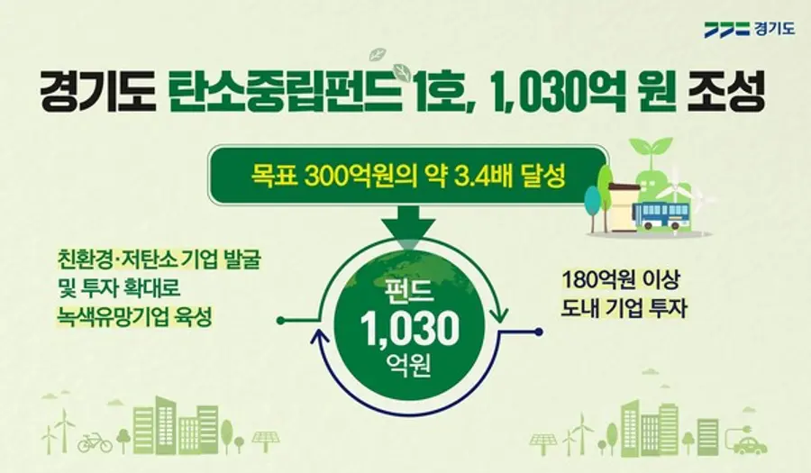 - 탄소중립 분야 유망 기업에 대한 투자 본격 추진 - 경가도 60억원 출자...민간 자금 등 970억원 유치, 최초 결성 목표인 300억원 3.4배, 730억원 초과 총 1,030억원 규모