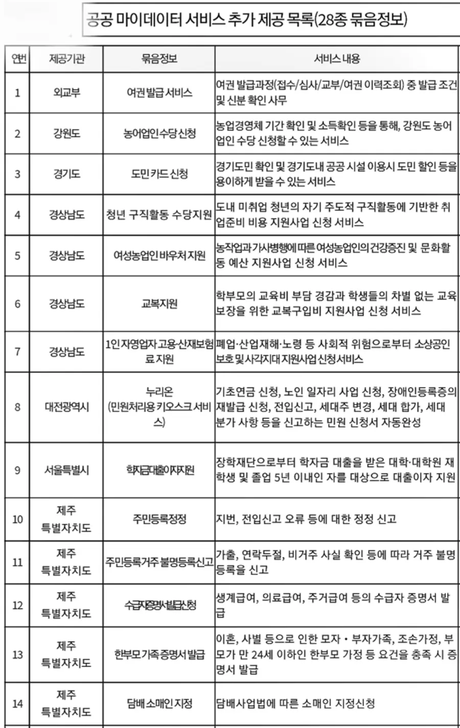 행정안전부는 5일부터 공공 마이데이터 서비스 28종을 추가로 확대한다고 밝혔다.