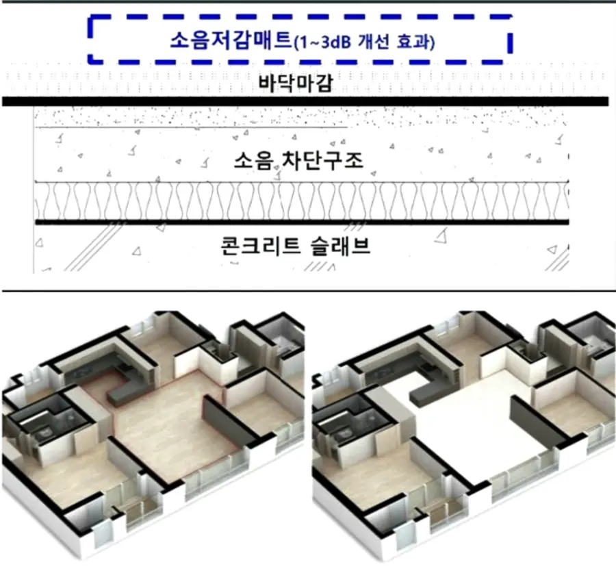 사후확인 본격 적용 전 공공주택(LH)에 바닥충격음 차단성능이 우수한 고성능 바닥구조를 적용하는 등 우수기술을 임대주택부터 선도적으로 적용한다.