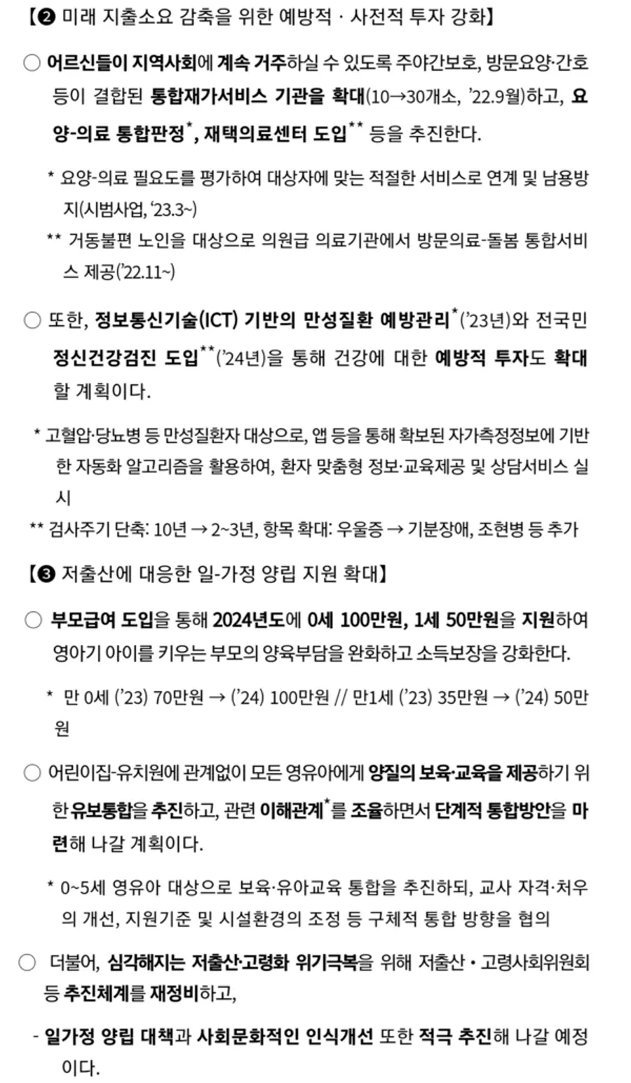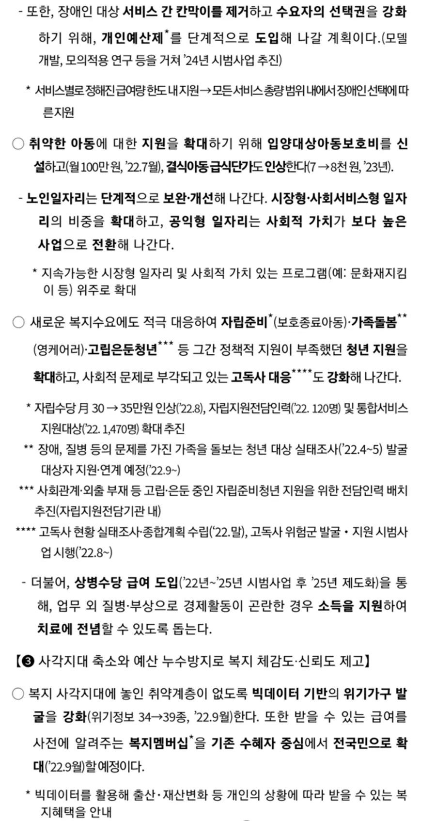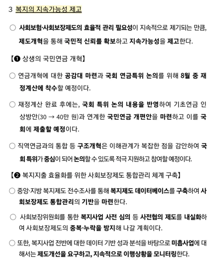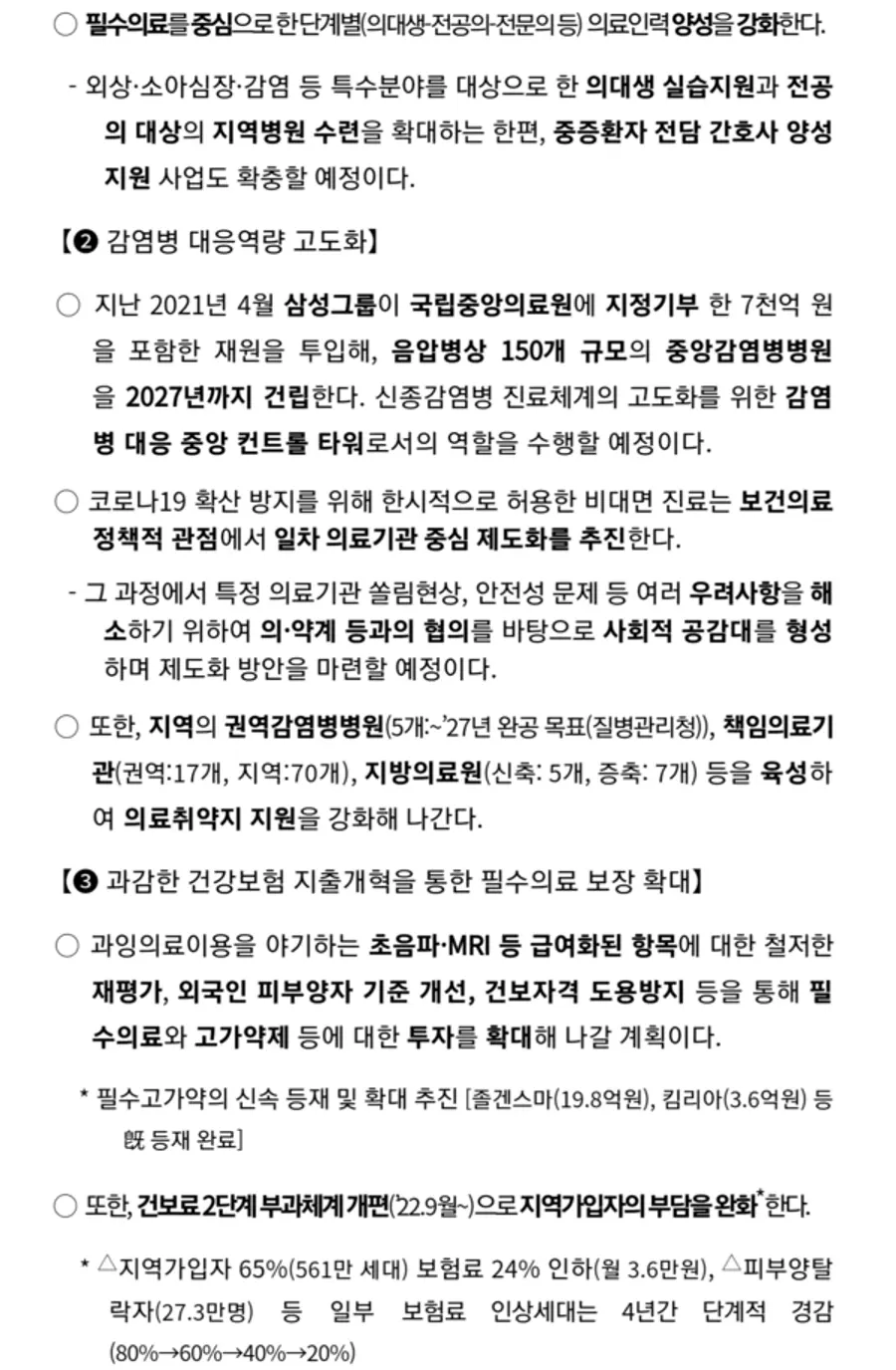 그 밖의 보건복지부 새정부 정책보고 내용의 핵심은 다음과 같다.