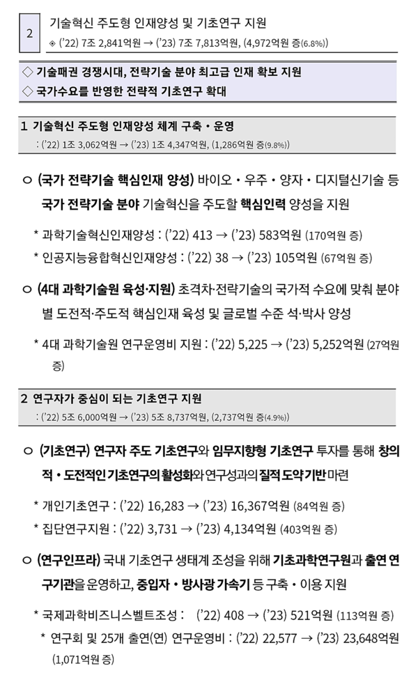 ▶인재양성 및 기초연구 지원 (7.8조원, 6.8%↑)
