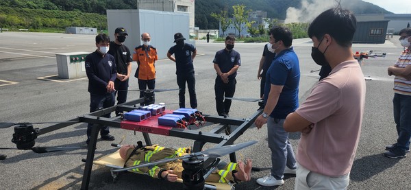 소방청은 고층건물 화재진압과 인명구조를 위한 △화재 진화드론 △들것드론 △정보수집장치의 실증 평가를 진행하고, 현장 적응성 및 안정성 등을 검증했다고 밝혔다.