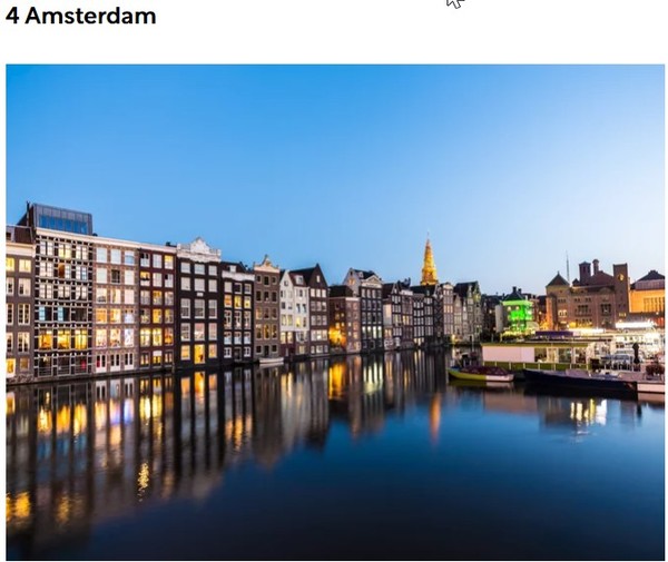 4위는 암스테르담으로, 이미 2009년부터 지속가능 정책을 시작하면서 혁신 기술을 이용해 왔다. 시는 2025년까지 탄소 배출을 40% 절감하겠다는 목표를 세워 놓았다. 시의 운송과 교통 데이터는 개발회사와 공유되면서 도시의 교통 시스템에 필요한 어플리케이션 프로그램 개발에 도움이 되고 있다. 시는 또 운송수단 자동화의 하나로 ‘로보 보트’를 도입하여 이용하고 있다.