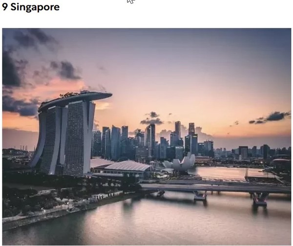 9위는 싱가포르로, 아시아에서는 유일하게 선정되었다. 싱가포르는 2030년까지 시내 빌딩의 80%를 환경 친화 빌딩으로 만들겠다는 ‘그린빌딩마스터플랜’을 내 놓았다. 그린빌딩마스터플랜은 새로 짓는 건물의 80%를 초에너지절약 빌딩으로 짓고, 기존 빌딩의 에너지효율을 80% 향상시키겠다는 ‘80-80-80주도계획’ 중 하나다.