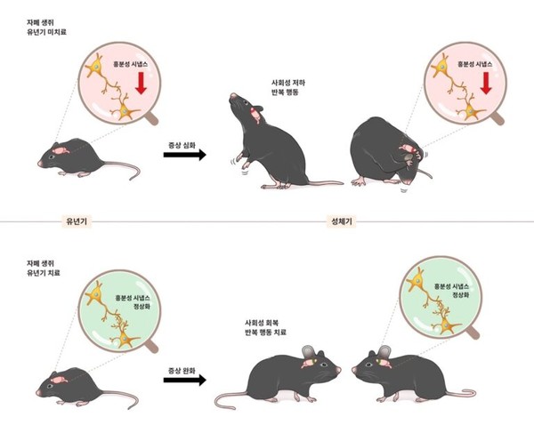 연구진은 또 다른 자폐 모델 생쥐를 이용해 조기 치료를 통한 완치 가능성도 확인했다.