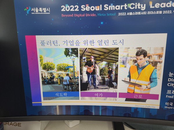 한인 출신의 현직 미국 시장이 고국을 찾아 스마트시티의 미래 방향성을 제시해 눈길을 끌고 있다. 지난해 미국 캘리포니아주 플러톤시장에 당선된 프레드 정 시장(사진)이 주인공이다. 정 시장이 27일 서울 DDP에서 열린 '2022 서울 스마트시티 리더스 포럼' 에 참석해 선진화된 미국 도시의 발전상을 전하는 등 향후 미래 도시 발전 방안에 대해 설명했다. 그는 캘리포니아주 풀러톤시는 디지털 기술을 적극 도입해서 시정의 효율을 높이고 주민들의 생활을 편리하게 제공하고 있다고 말했다.