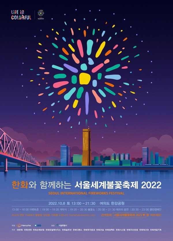 서울세계불꽃축제가 3년만에 재개된다. 27일 서울시와 한화그룹 등에 따르면 코로나19로 중단됐던 대한민국 대표 축제인 서울세계불꽃축제 2022가 내달 8일 여의도 한강공원에서 열릴 예정이다.