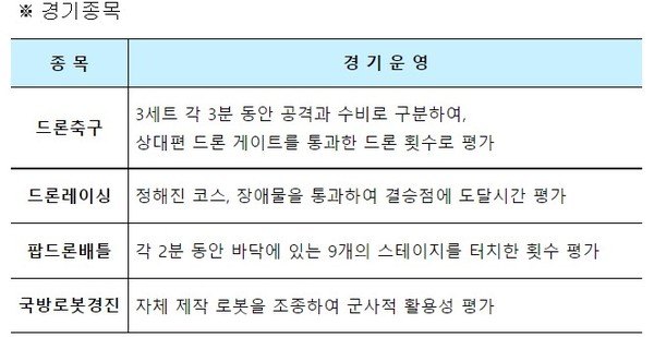 국민과 함께하는 제74주년 국군의날 기념 'K-Military 페스티벌‘의 일환으로 마련된 이번 대회는 육·해·공군사관생도 및 장병들의 드론과 로봇 관련 첨단기술에 대한 열정을 활성화하고, 신기술 활용 ’붐’을 조성하기 위해 마련됐다.