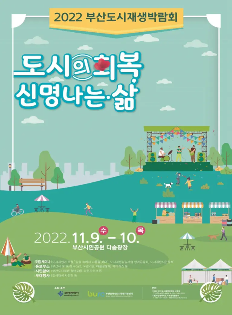 올해로 여섯째를 맞는 이번 ‘부산도시재생박람회’는 부산시가 주최하고 (재)부산광역시도시재생지원센터가 주관하며, 부산시와 16개 구·군을 비롯해 도시재생 마을공동체, 유관기관 등이 함께 부산도시재생사업의 성과를 공유하고 소통하기 위한 장으로 마련됐다.