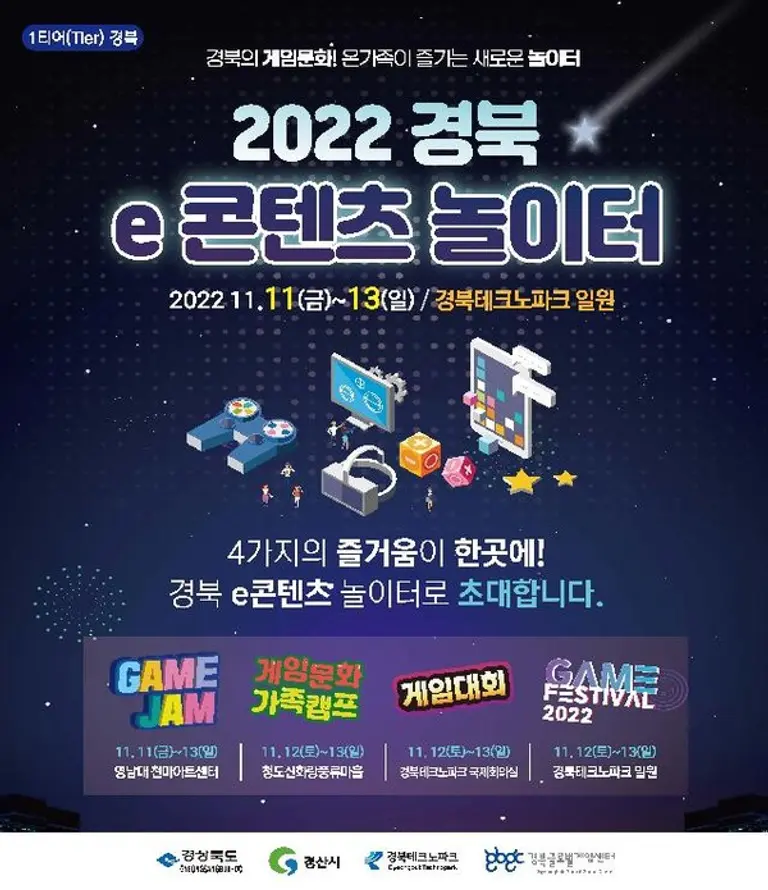 경상북도는 12~13일 경북테크노파크 일원에서 지역 게임 산업의 성과를 한 눈에 볼 수 있는 ‘2022 경북 e콘텐츠 놀이터’를 개최한다.
