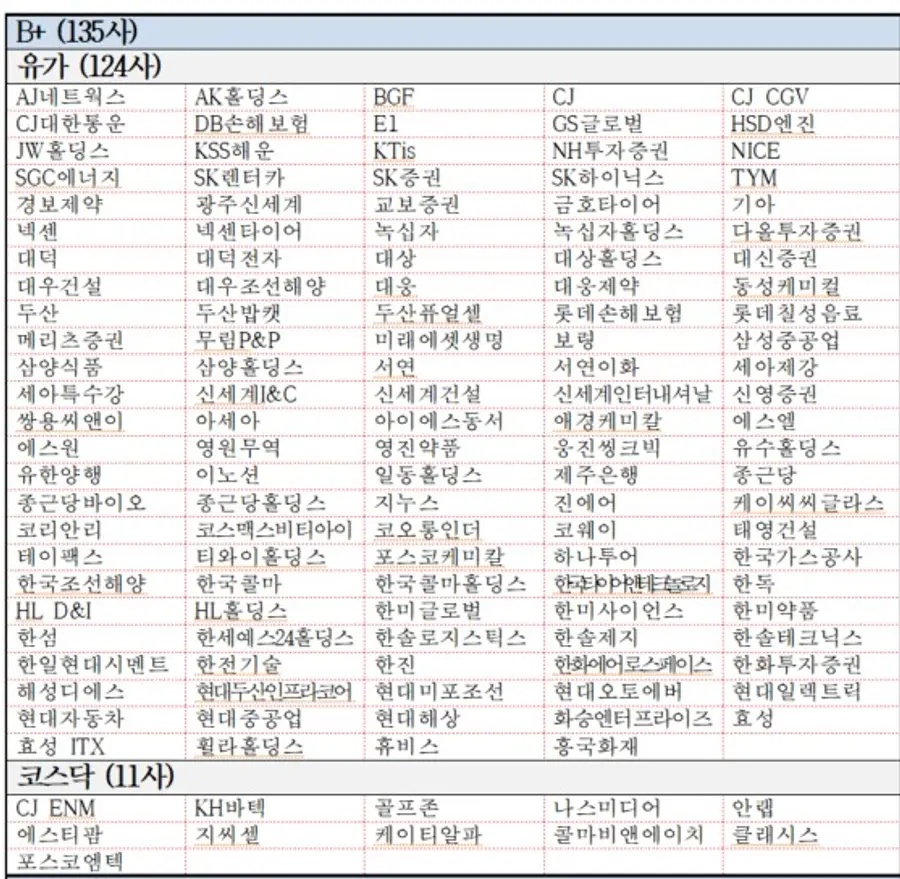 (표) ESG 등급 A+ 5개사 · A 123개사 명단