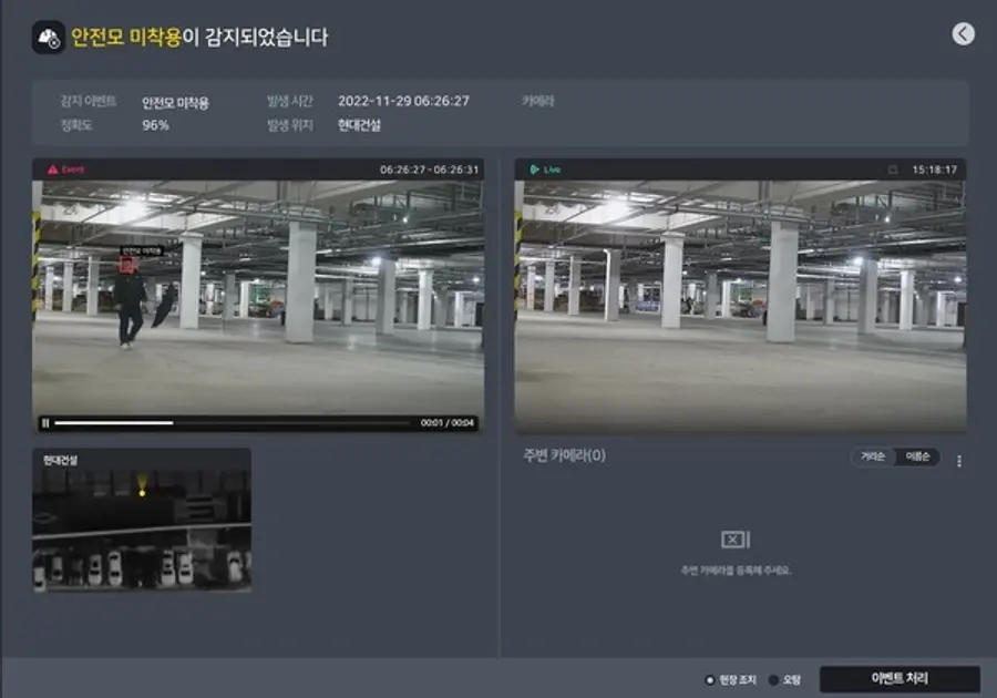 Based on this, learning data including more than 2 million working objects such as construction equipment, workers, fireworks, and smoke were built, and a 'field CCTV image analysis system was developed by combining them with the technology of artificial intelligence companies.