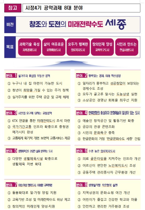 다음은 세종시 주요 공약과제 목록이다.