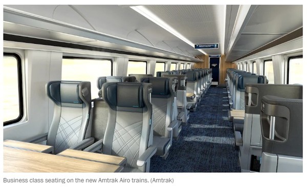 16일 워싱턴포스트 보도에 따르면 암트랙은 오는 2026년부터 운항할 미래 열차의 재원을 공개했다. 이미 50년 이상 사용해 온 노후열차를 대체할 예정이다. 새 열차는 파노라마 창, 움직일 수 있는 받침대가 있는 보다 더 편안한 좌석, 여기에 컵과 등받이 태블릿 홀더가 구비됐다. 식당칸이 별도로 있고, 좌석마다 개별 전원 콘센트와 USB 포트, 개별 조명등, 온보드 와이파이 등 승객들의 보다 편리한 IT생활서비스를 충족할 수 있는 각종 편의시설을 갖추고 있다.