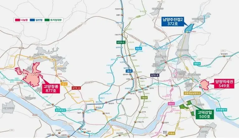 나눔형은 고양창릉(877호), 양정역세권(549호),서울 고덕강일 3단지(500호), 일반형으로는 남양주진접2(372호)가 공급될 예정이다.