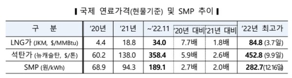 4인가구의 주택용 전기요금이 월평균 4022원 오른다. 전기요금 인상률은 9.5%이다. 한국전력(대표이사 정승일)은 LNG 등 올해 상승한 연료비와 기후환경비용 등을 반영해 전기요금을 인상한다며 이같이 밝혔다. 이번 전기료 인상은 LNG 등 국제연료가격 폭등으로 전력시장가격이 급등한 영향이다. 아울러 2022년 신재생의무이행비용, 온실가스배출권비용 등 기후환경비용이 오른데 따른 것이다.