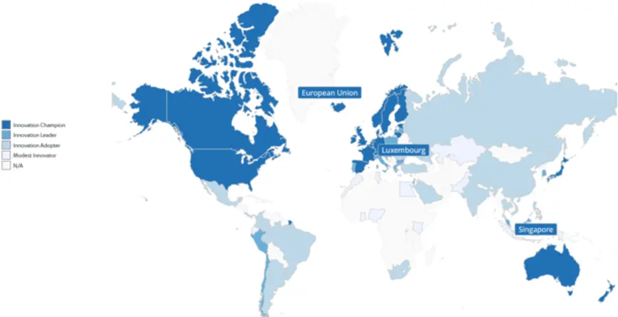 혁신 챔피언에 이름을 올린 24개국과 블럭은 1위부터 순위대로 핀란드, 미국, 에스토니아, 스웨덴, 노르웨이, 아이슬란드, 영국, 캐나다, 아일랜드, 네덜란드, 룩셈부르크, 호주, 이스라엘, 리투아니아, 싱가포르, 덴마크, 독일, 프랑스, 스위스, 벨기에, 뉴질랜드, EU, 오스트리아, 스페인, 일본 등이다.