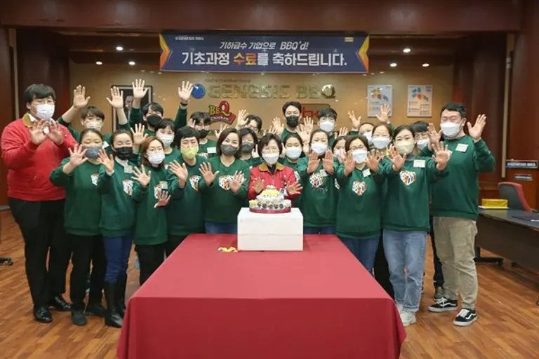 BBQ 치킨대학의 누적 수료생수가 3만5천명에 달하는 것으로 조사됐다. 치킨 프랜차이즈 제너시스BBQ 그룹은 지난 13일 경기 이천시 소재의 치킨대학에서 기초교육과정에 참여한 패밀리(가맹점주) 22명의 계묘년 첫 수료식을 진행했다고 17일 밝혔다.