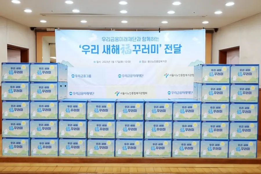 우리금융그룹 우리금융미래재단(이사장 손태승)은 지난 17일 서울 용산구 소재 용산노인종합복지관에서 우리금융지주, 서울시노인종합복지관협회와 함께‘우리 새해 복 꾸러미’전달식을 가졌다고 19일 밝혔다.