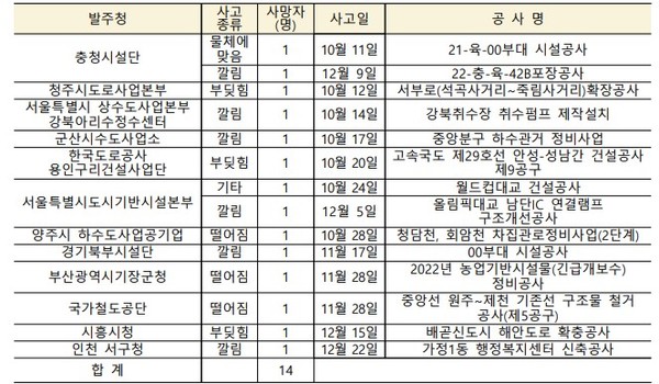 지난해 4분기에 사망사고가 발생한 대형건설사와 관련 하도급사의 소관 건설현장에 대해 3월까지 특별점검을 실시할 계획이다.