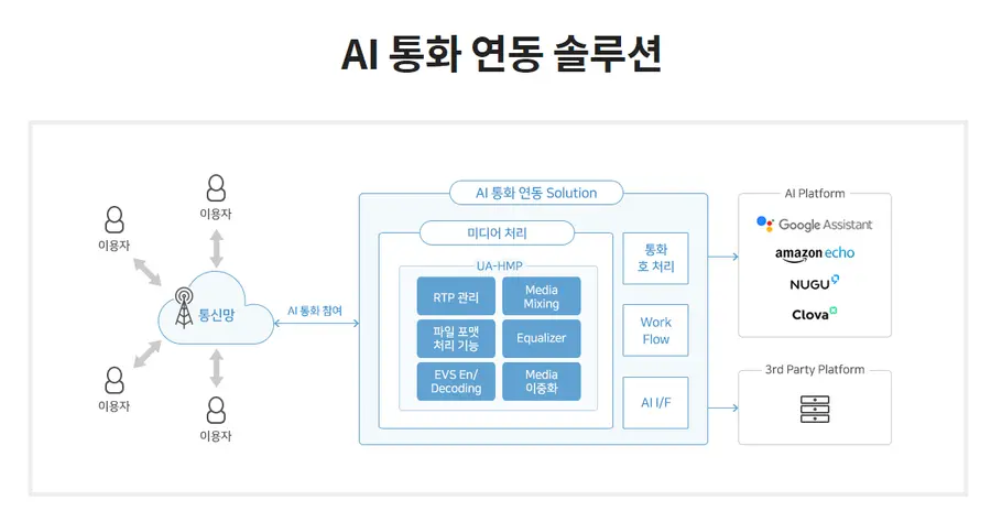전화 통화에 AI가 참여하여 새로운 AI 서비스를 할 수 있도록 도와 주는 솔루션이다.