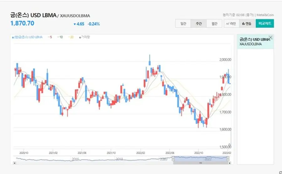 골드만삭스는 2023년말 금값이 온스당 1860달러 선 근처를 맴돌 것이라고 전망하고 있다.