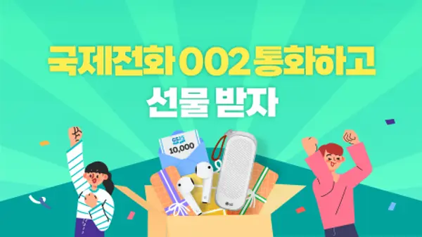 휴대폰(선불폰 제외)으로 국제전화 002를 이용해 2분 이상 통화한 고객이라면 누구나 이벤트에 응모할 수 있으며, 통화 시간이 많을수록 당첨확률이 올라간다.
