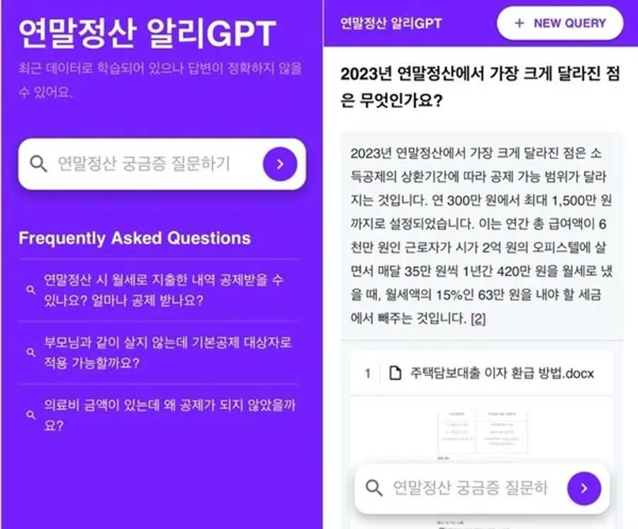 연말정산의 경우 매년 바뀌는 사항이 많고, 과세표준 구간별 절세 전략이 다르기 때문에 개개인의 사례가 다양하고 복잡하다. 연말정산 결과가 반영된 월급을 지급받은 고객들의 문의가 급증할 때, ‘연말정산 알리GPT’가 개별 맞춤형 답변을 제공하면서 고객의 편의를 높일 것으로 보인다.