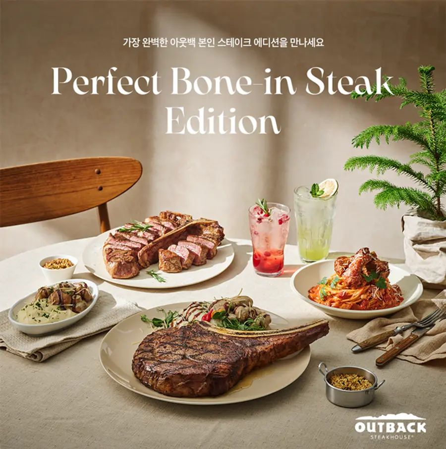 아웃백은 토마호크 에디션 또는 포터하우스 에디션과 파스타, 음료, 커피 등으로 구성된 ‘퍼펙트 본인 스테이크 에디션(Perfect Bone-in Steak Edition)'을 전국 매장을 통해 동시에 출시한다고 22일 밝혔다.