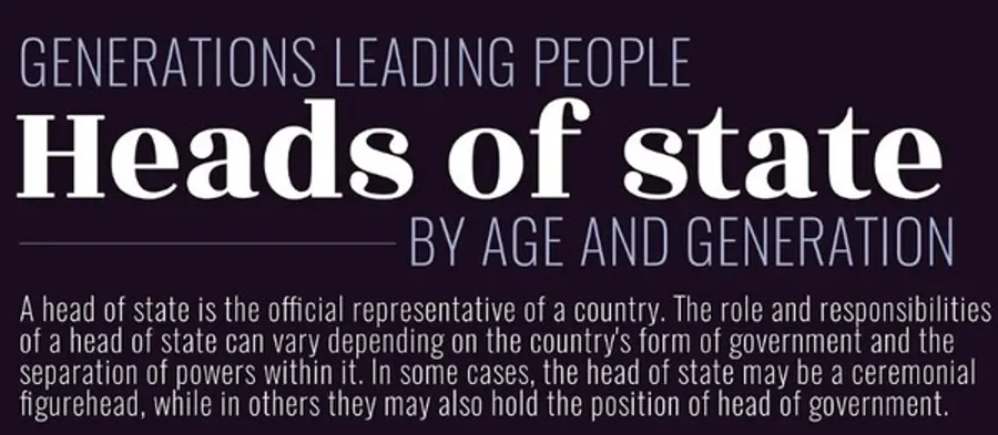 베이비붐 세대로 통칭되는 59세∼77세의 국가원수가 118명으로 61.5% 비중을 차지했다. 1946년에서 1964년 사이 태어난 베이비 붐 세대가 현재 전세계를 이끌고 있다해도 과언이 아니다.