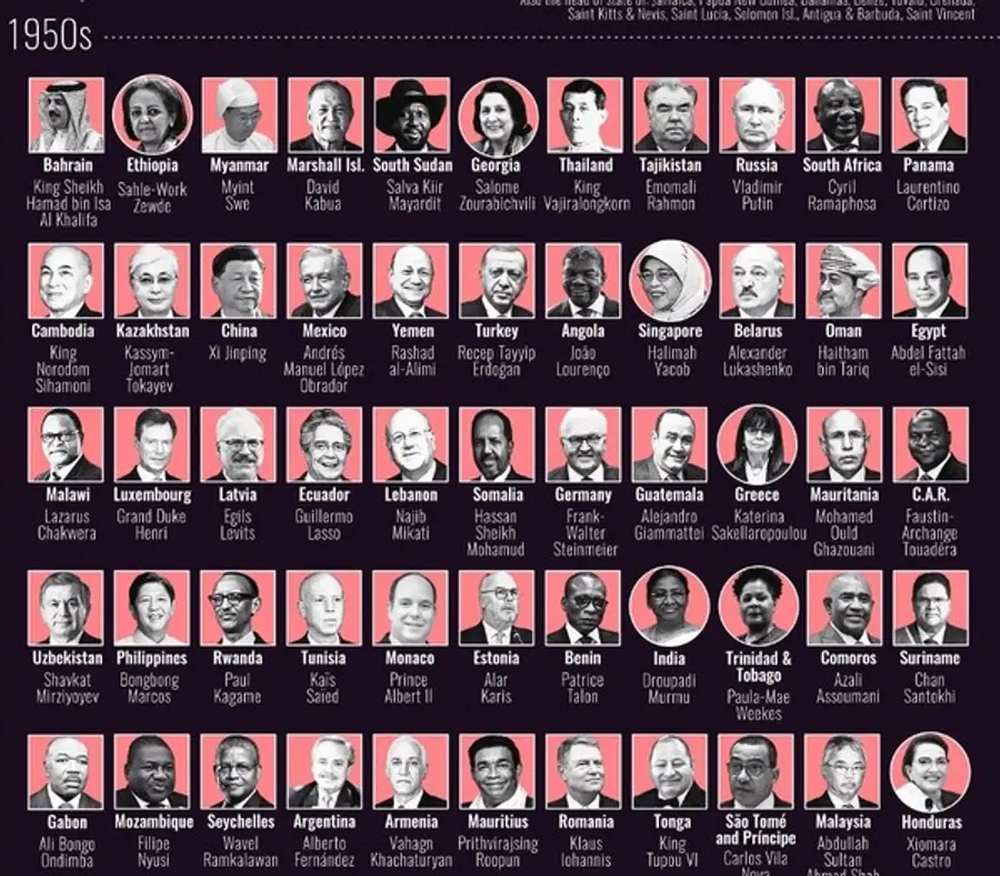 27일 글로벌데이터인포그래픽업체 비주얼 캐피탈리스트(Visual Capitalist)가 CIA World Factbook 및 Wikipedia의 데이터를 사용해 전세계 192개국 국가수반의 출생연도 등 나이를 분석했다.