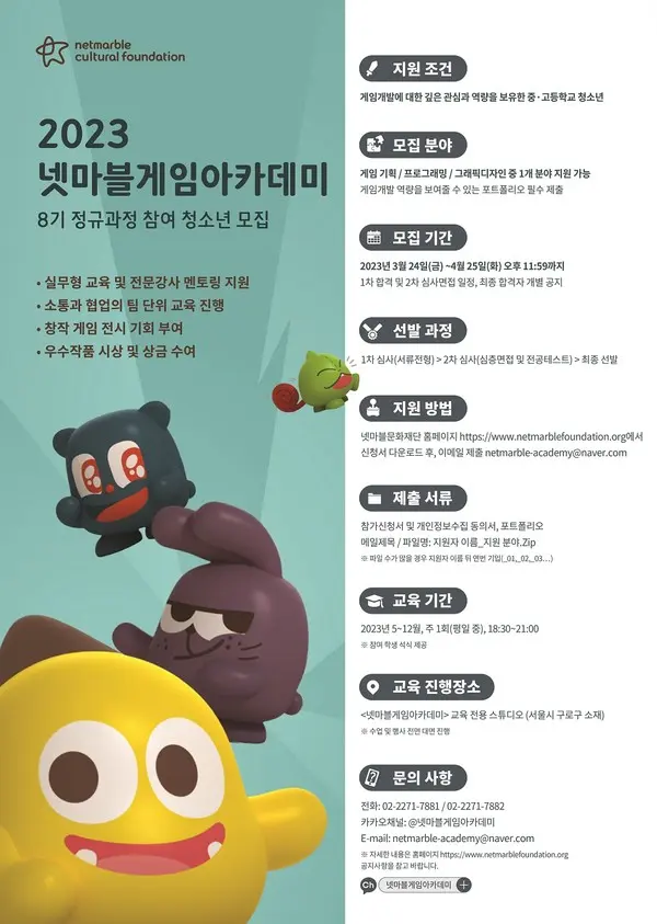 넷마블문화재단(이사장 방준혁)은 게임아카데미 8기 정규과정 참여 청소년을 모집한다'