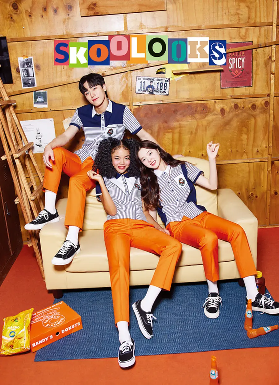 공개된 스쿨룩스의 화보는 학생들의 기쁨과 행복, 친구와의 관계성이 담아져 긍정적이고 밝은 이미지의 하이틴룩을 선보인다. 또 개성이 넘치고 다양성을 존중하는 스쿨룩스의 스타일을 담아냈다.