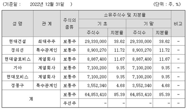 6일 현대엔지니어링 2022년 사업보고서에 따르면 정의선 현대자동차그룹 회장은 현대엔지니어링에서 최근 50억원 이상의 배당금을 확보했다. 정 회장이 현대엔지니어링 지분을 취득한 2014년 이후 지난 9년간 받은 누적배당액은 1050억원에 달한다.