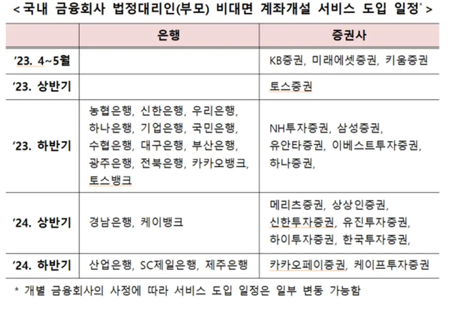 법정대리인인 부모를 통한 비대면 계좌개설 서비스의 구체적인 도입 일정 등은 각 금융회사가 자율적으로 결정할 예정이다.
