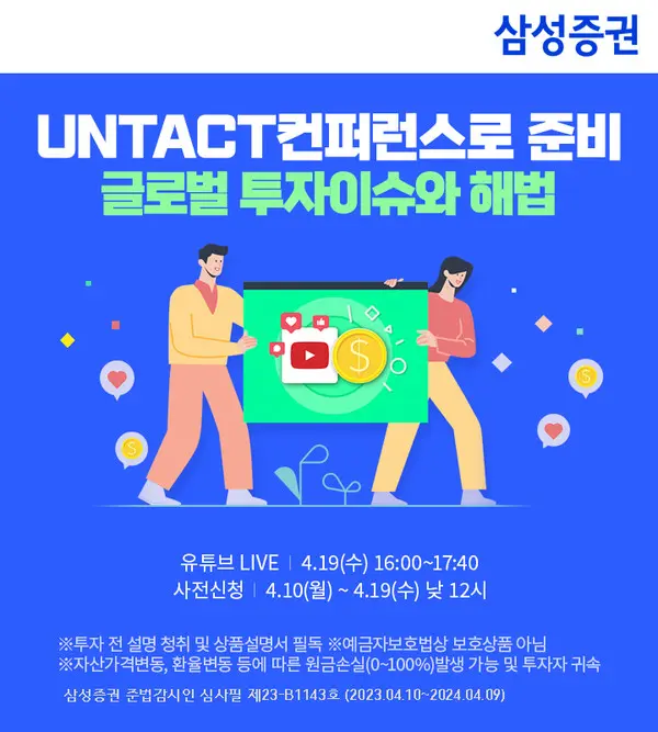 언택트 컨퍼런스는 19일 수요일 오후 4시부터 5시 40분까지 삼성증권 유튜브에서 실시간으로 진행된다.