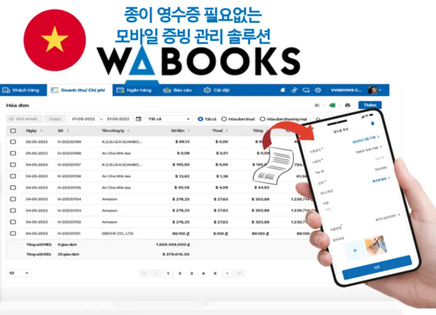 웹케시그룹(회장 석창규)은 AI경리나라의 베트남 버전인 ‘와북스(WABOOKS)’를 현지에 론칭했다고 25일 밝혔다. WABOOKS는 베트남에 진출한 국내 기업과 현지 기업을 대상으로 현지 사업장의 꼼꼼한 매입 증빙 관리를 통해 회사 경비 사용을 인정 받을 수 있도록 지원해주는 경리 업무 솔루션이다.