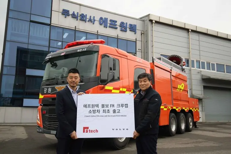 볼보트럭코리아(대표이사: 박강석)는 지난 25일 경기도 화성시에 위치한 소방 특장 업체 에프원텍 본사에서 FM 크루캡 국내 최초 1호 모델의 출고 기념식을 진행했다고 27일 밝혔다. 출고 기념식에는 이현철 볼보트럭코리아 상무와 김희종 에프원텍 대표이사를 비롯한 관계자들이 참석했다.