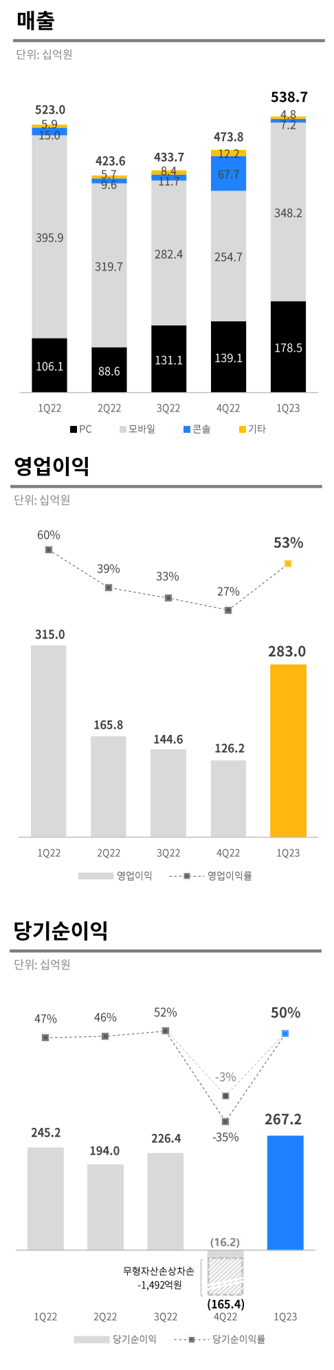 크래프톤은 지난 1분기 PC 게임 고성장과 모바일 성수기 효과로 전분기 대비 견조한 성장세를 시현했다며 특히 PUBG PC가 성장을 견인하면서 역대 최대 분기 매출을 경신했다고 밝혔다.