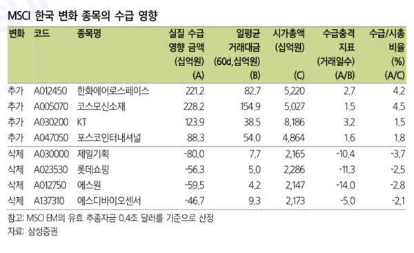 한편 김 CFA는 "이번 리뷰 결과에 따라 종목별 수급 영향 금액은 유동시가총액 수준에 따라 2000억원 증가에서 500억원 감소 사이에 분포할 것"이라고 예상했다.