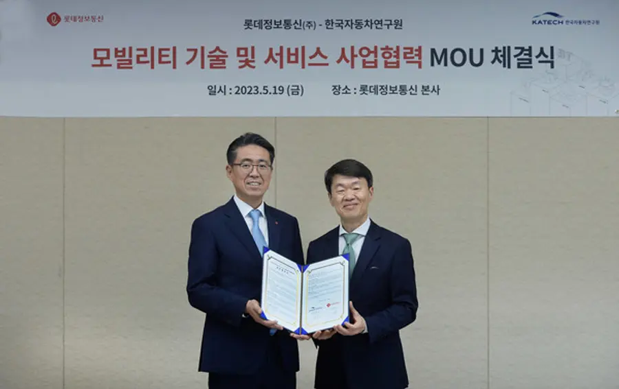롯데정보통신이 한국자동차연구원과 모빌리티 분야 협력체계 구축을 위한 업무협약(MOU)를 체결했다고 22일 밝혔다.