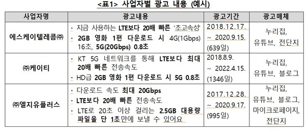 공정위 기준에 따른 허위 광고 게시일자를 보면 KT가 2721일로 광고 노출 기간이 가장 길었다. 이어 LGU+가 2107일이었고 가장 많은 과징금을 물게 된 SK텔레콤의 광고게재 일수는 2086일로 통신3사중 가장 짧은 기간 노출됐다.
