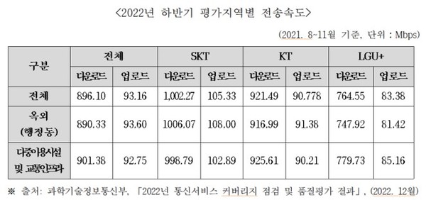 실제 과학기술정보통신부가 지난해 하반기 실시한 전송속도에서 LGU+의 통신품질은 평균치를 크게 밑돌고 있는 것으로 조사됐다. LGU+ 5G망의 다운로드와 업로드는 평균치에 비해 각각 86%와 91.8%수준에 그쳤다.