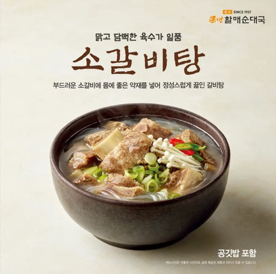 큰맘할매순대국은 지난 18일부터 전국 매장을 통해 ‘소갈비탕’과 사이드메뉴 ‘제육볶음’을 새롭게 선보였다고 30일 밝혔다.